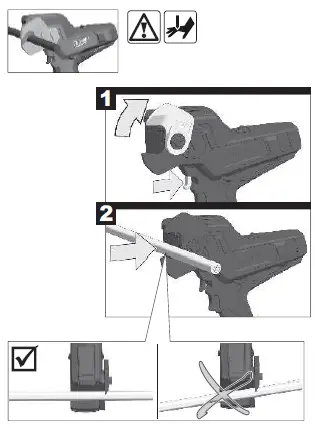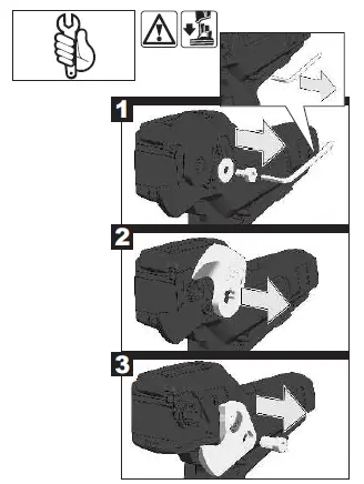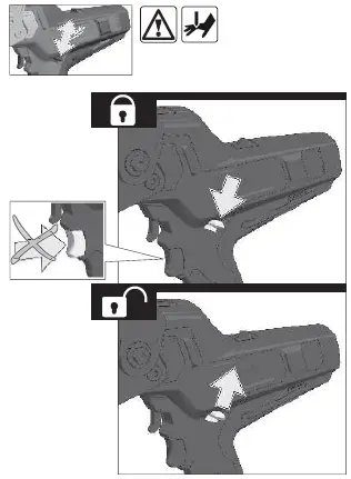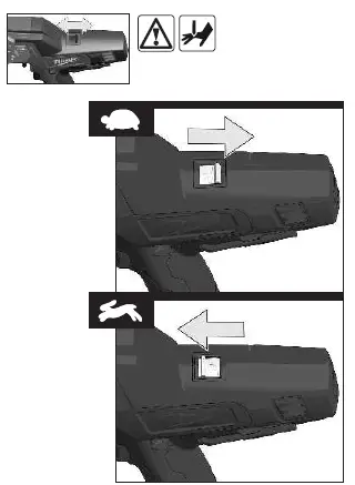 Move the speed control switch between „1“ and „2“ several times back and forth. Pull the blade release lever.