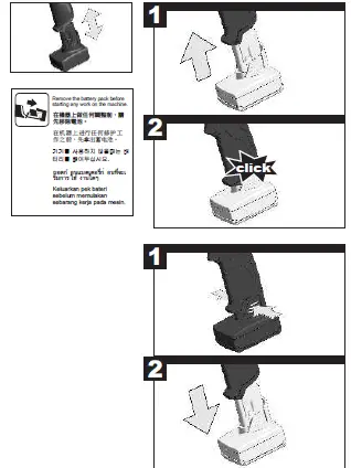 - Remove the battery pack before starting any work on the machine.