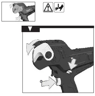 Remove the battery pack, then use the hex wrench to loosen the blade release bolt. Loosen the bolt until the bolt collar is free of the blade. Pull the blade release lever. Be sure to securely tighten the blade bolt before continuing work. If the jam is not released…