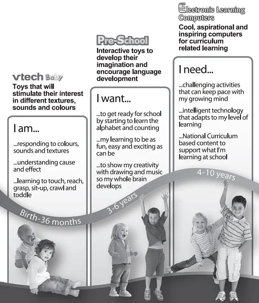 VTech understands that a child’s needs and abilities change as they grow and with that in mind we develop our toys to teach and entertain at just the right level …
