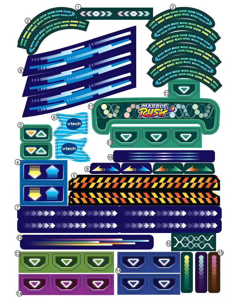 Please securely stick the labels to the play set as indicated below: