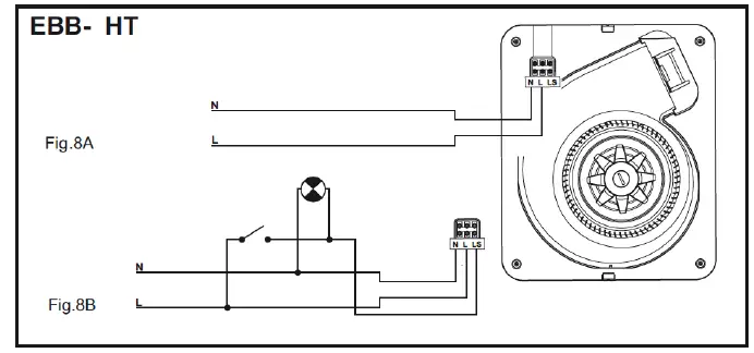 - Follow the electrical diagram applying to the EBB version that is being installed (fig. 5 to 8).