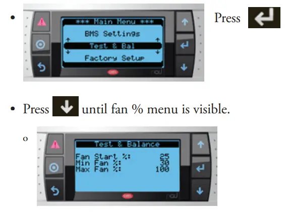 Once all power is run and cables are connected, the system is ready to run. The system is ready to confirm each fan/ damper operation and test and balance. The system ships with duct static pressure set point of 1.0 in. wg.