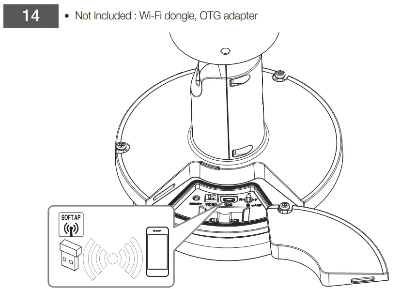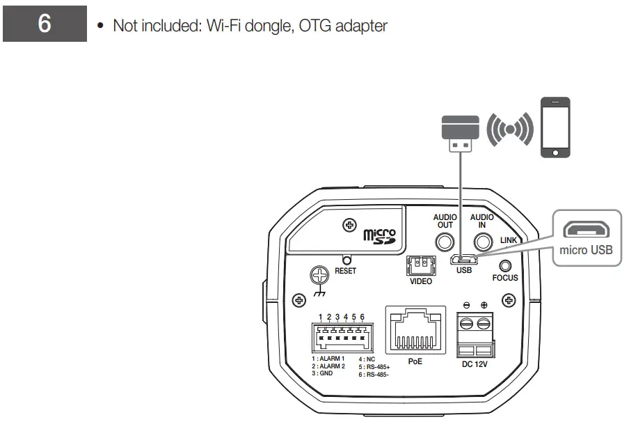 - Connect OTG adapter (5-pin) and Wi-Fi dongle to the micro USB terminal.