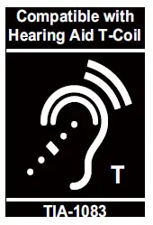 Telephones identified with this logo have reduced noise and interference when used with most T-coil equipped hearing aids and cochlear implants. The TIA-1083 Compliant Logo is a trademark of the Telecommunications Industry Association. Used under license.
