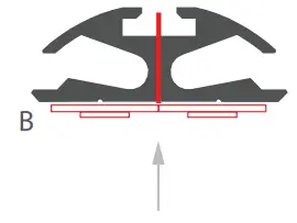 Suspend the extrusion using the hangers (C) and a chosen suspension system. The hanger manual can be downloaded at klusdesign.com