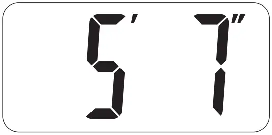 Next, the inch or cm symbol lights up (if switch is set to lb, default is height in inches; if switch is set to kg, default is height in cm). Press the up or down arrows to adjust the height. Pressing and holding either the up or the down arrow will advance numbers quickly. Press SET to accept the height.