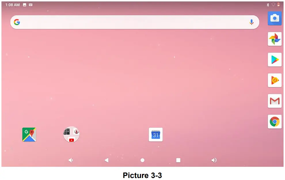 | Setting button | Display recently browsed history; double click this button, you can switch between the last 2 applications |