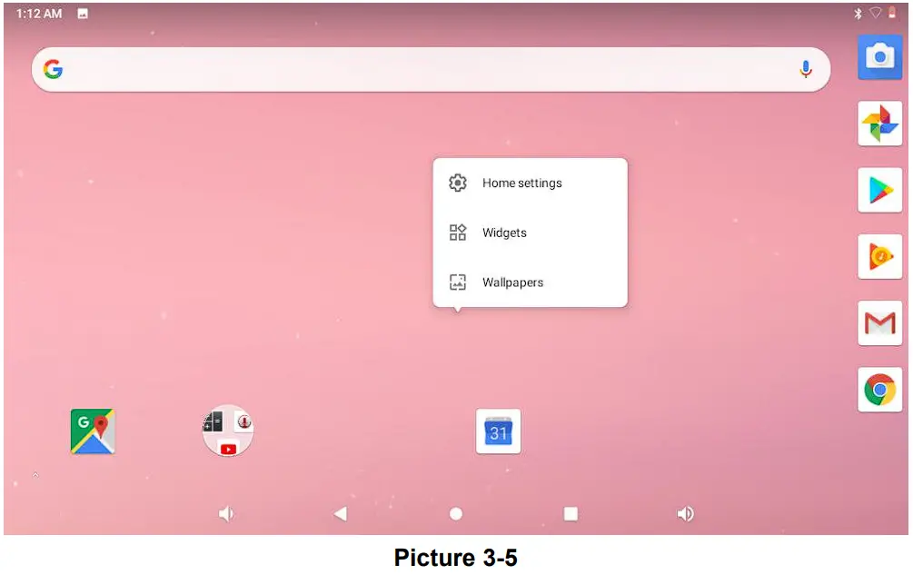 Main interface as below picture, long press the blank and it will popup windows to set wallpaper, folder, widgets, and shortcut.