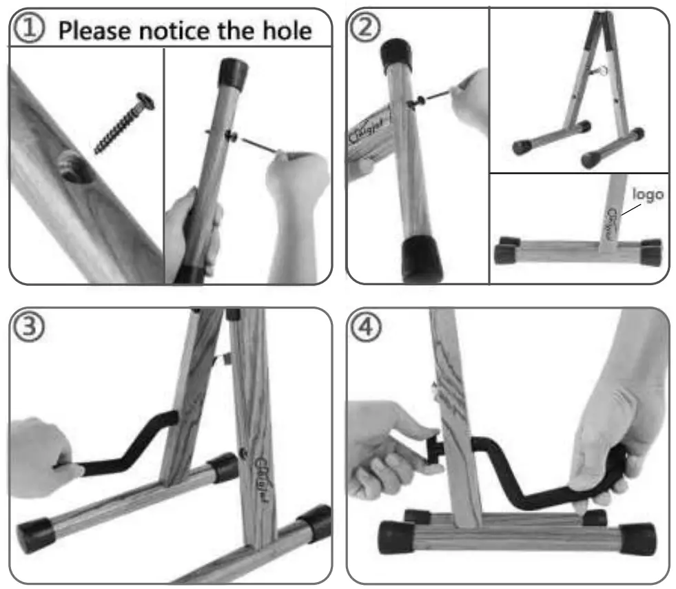 ③ Please screw down the Stainless Steel Arms into the Wooden Tripod.