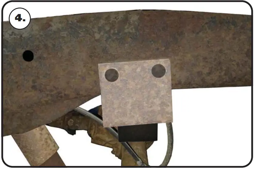 - After cutting, slip the c-notch over the frame to check the fitment. The cut areas of the frame may require grinding for the c-notch to fit. The c-notch will be used as a template to drill the remaining mounting holes. Use a 7/16” Drill bit to drill the holes in the side of the frame. There are 8 holes in the side that need to be drilled.
