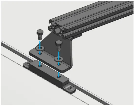 Secure the tops of the mounting bracket pairs to the wide faces of the cross members using the supplied T-nuts, 9/16” hex bolts, and flatwashers.