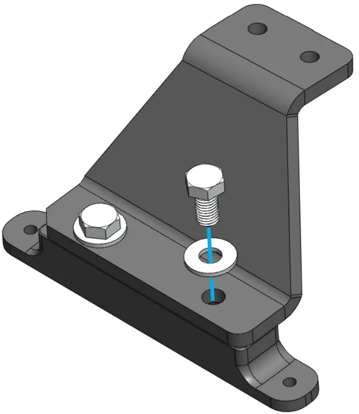 Loosely fasten the supplied rivet spacers to the bottom (longer) flange of the mounting brackets using the supplied M8 hex bolts and M8 flat washers. The contour spacers go on the front mounting brackets, and the flat spacers go on the middle mounting brackets. The brackets are designated with ‘F’ and ‘M’, respectively.
