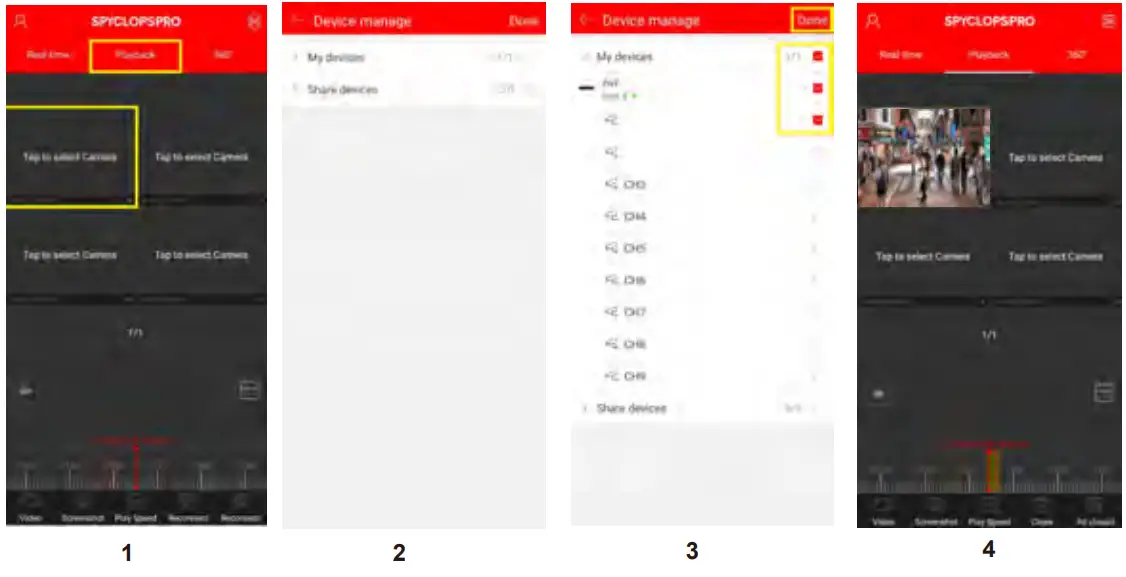 - Tap the check box for the camera to view recorded videos and tap “Done”