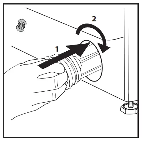 - Insert the water filter: Reinsert the water filter again by turning it in clockwise direction . Make sure to turn it in as far as it goes; the filter handle must be in vertical position . To test water tightness of the water filter, you can pour about 1 liter of water into the detergent dispenser .