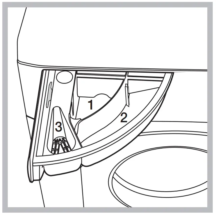 Do not insert detergent in this compartment. Compartment 2: Washing detergent (powder or liquid)
