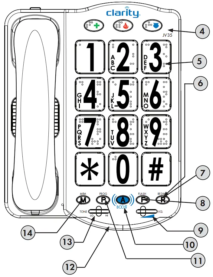 clarity JV35W Amplified Big Button Telephone with Talk Back Numbers