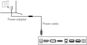 - Connect the power cable to the monitor, then connect the other end directly to a power socket.