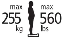 | Size | User weight – kg (lbs) | Width (W) – cm | Height (H) – cm |