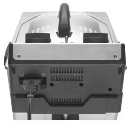 - To turn on your fryer, attach breakaway cord to back of the appliance, then plug into outlet.