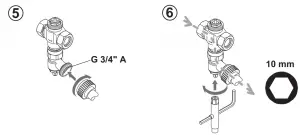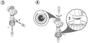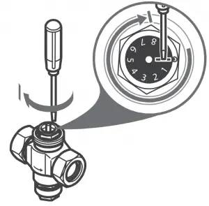 Without mounted actuator the valve is normally open. The maximal flow rate can be throttled by presetting the control insert. Presetting is either done according to the flow diagram on page 6 or by flow measurement. A measuring instrument can be connected to the valve by using the V9406 Verafix-MES adapter (accessory). Presetting and flow measurement can be done at the same time. The effect of a changed presetting is immediately displayed by the measuring instrument.