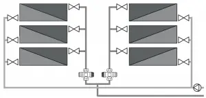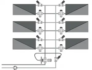 Fig. 2 Due to the high kvs-value, a single V9406 Verafix-Cool can be used to control several ceiling elements connected in parallel.