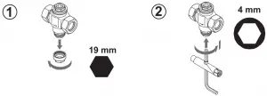 - Brass nickel-plated protection cap with 19 mm hexagon on bottom