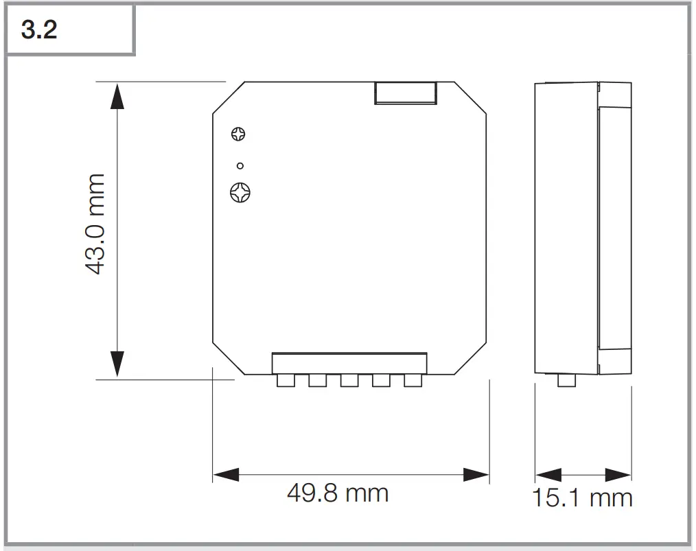| – Dimensions (H × W × D): | 49.8 × 43.0 × 15.1 mm |