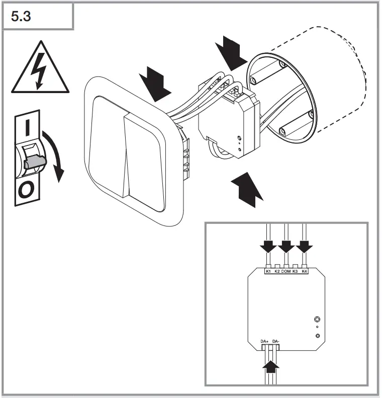 - The switch coupler integrated additional switched into a DALI lighting system.