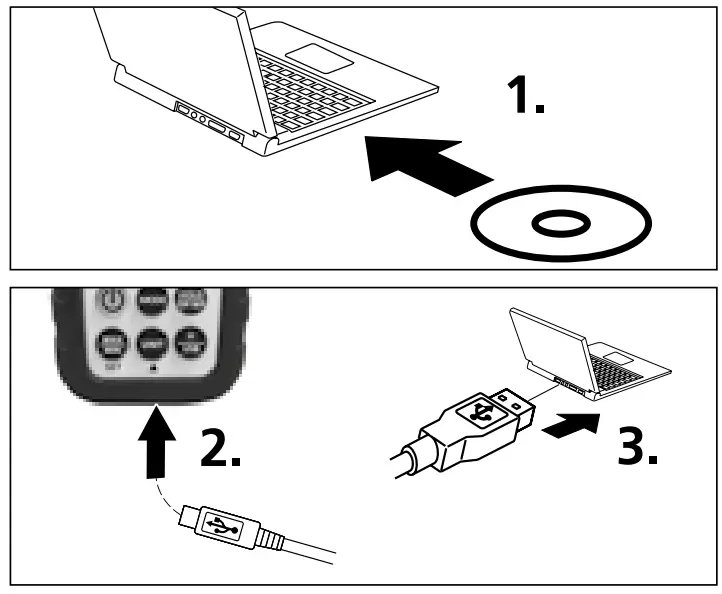 Start the software and activate the USB function by pressing and holding the „USB“ button. The software now shows the measured values both in numerical as well as in graphic form.