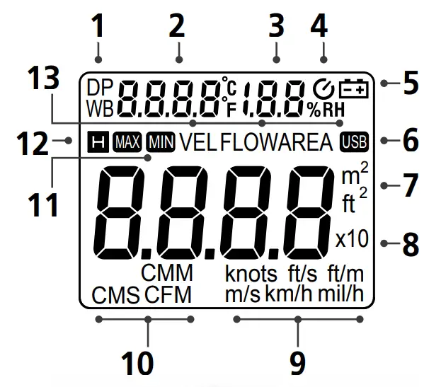 Please refer to the following instructions for use when determining wind speed or volumetric flow rate: