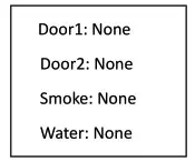 Press ENTER to return to the main menu, and then press DOWN key to select Sensors to view the door, waterlogging, and smoke sensor status as below: