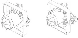 If you are making a back to back or reverse installation (hot on right and cold on left) install the valve body as described, but the water supply lines will be reversed.