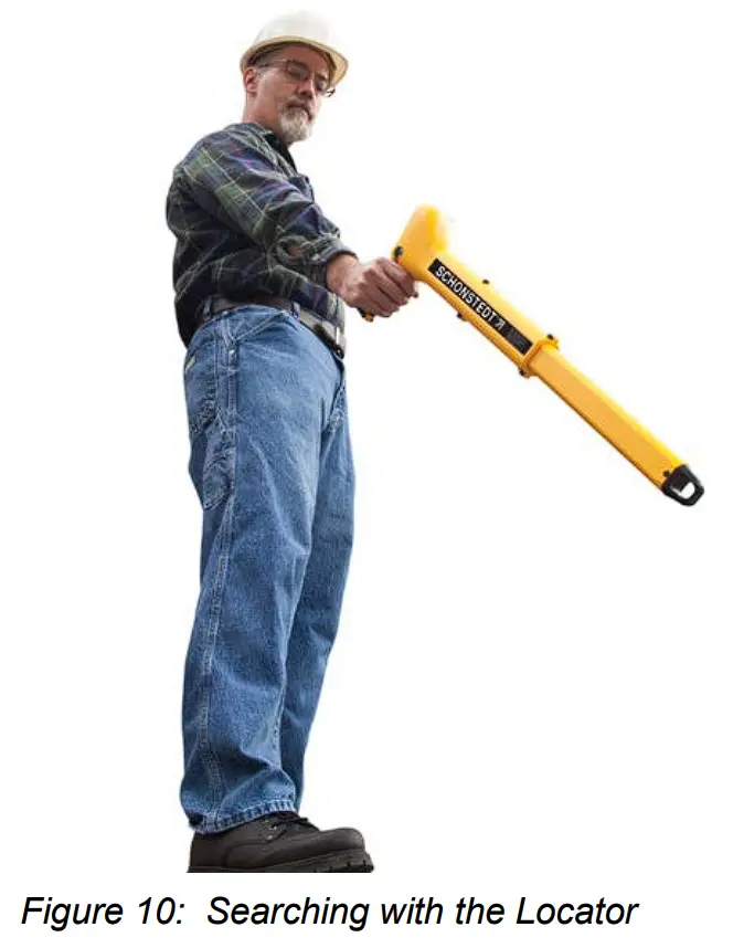 Since the upper sensor is located near the handle of the instrument (especially if it is being used in the collapsed position), wristwatches may produce unwanted changes in the audio signal and in the meter indication. Therefore, watches should be removed. Keep the locator away from your shoes as they may contain magnetic material.