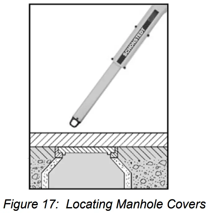 The magnetic field is strongest at the edge of a shallow manhole cover. You can easily trace the edges of covers near the surface. Locating depths for manhole covers range up to 9 feet.