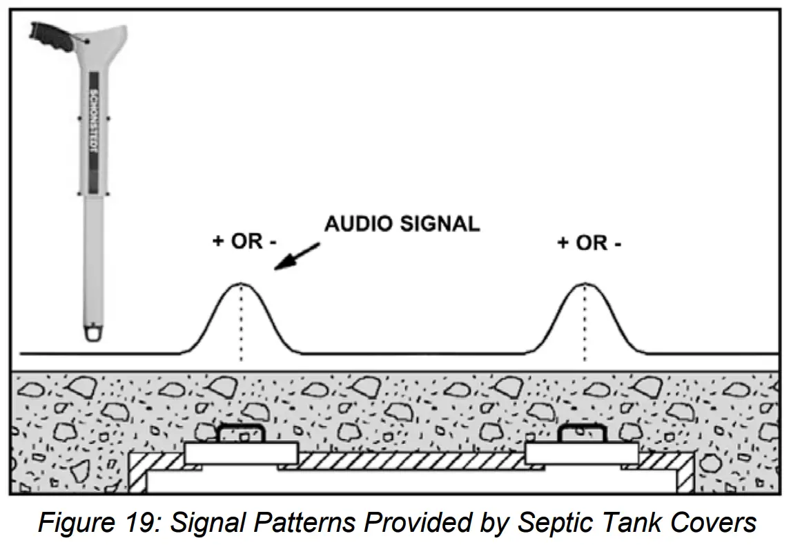 The GA-92XTd can also be used to precisely locate the metal handles or reinforcing bars on septic tank covers at depths of up to 4 feet.
