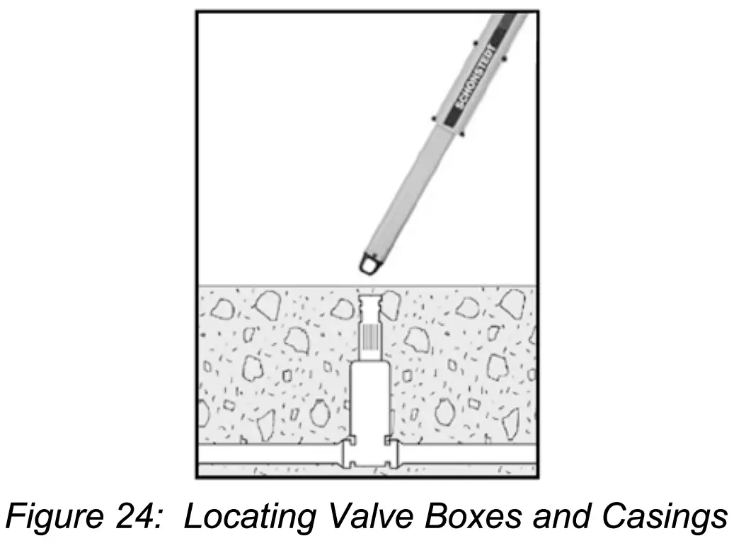 Both the valve and its casing, when iron, provide strong magnetic fields that make them easy to locate. Plastic enclosures containing magnets (which are typically used with non-ferrous valve boxes) are easily located at depths of up to 9 feet.