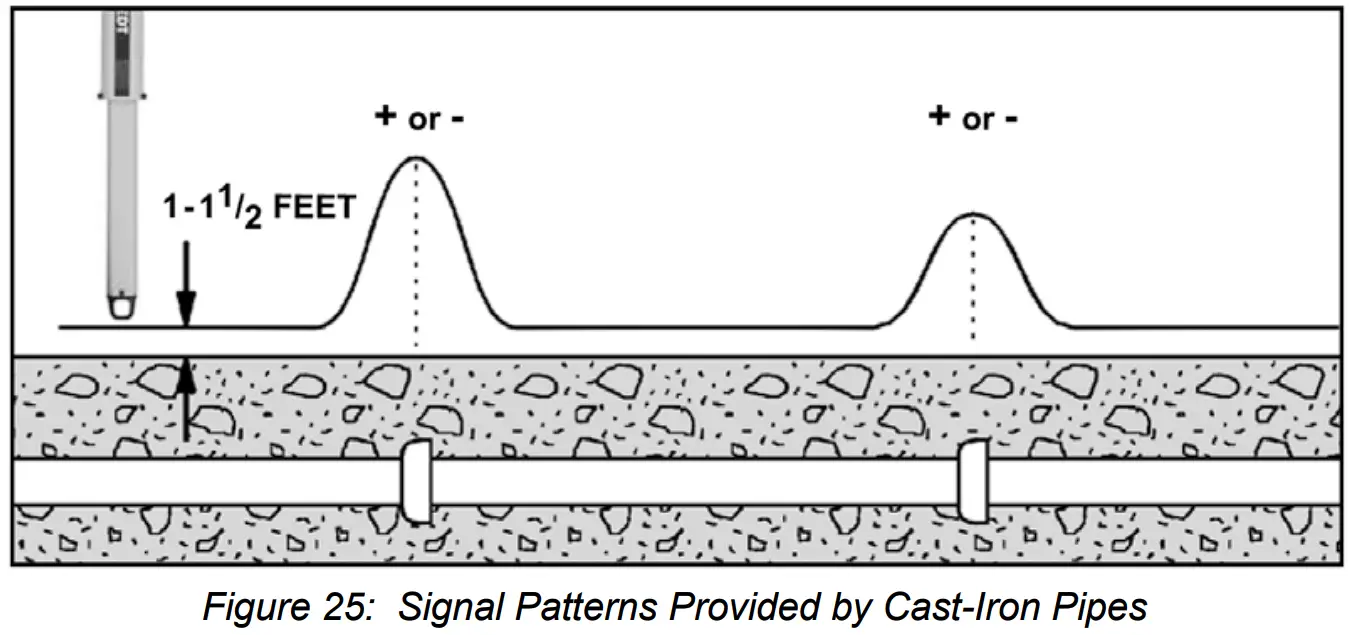 As illustrated in Figure 25, cast-iron pipes produce the strongest magnetic signals at their joints.