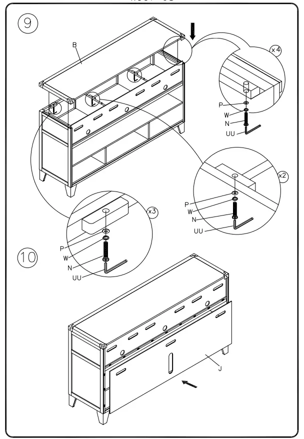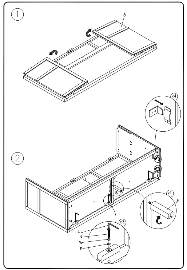NOTE: UNIT SHOULD BE ASSEMBLED BY TWO OR MORE PEOPLE. DO NOT TIGHTEN ANY BOLTS UNTIL ALL BOLTS HAVE BEEN STARTED!