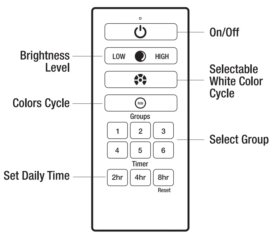 - While the pathway light (AA) is in pairing mode, press and hold the desired Groups button (1, 2, 3, 4, 5 or 6) for 3 seconds to pair the remote to the selected group.