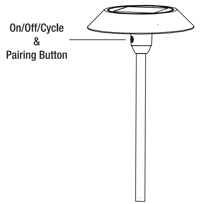 - Turn on the pathway light (AA) by pressing the button located on the base, below the light.