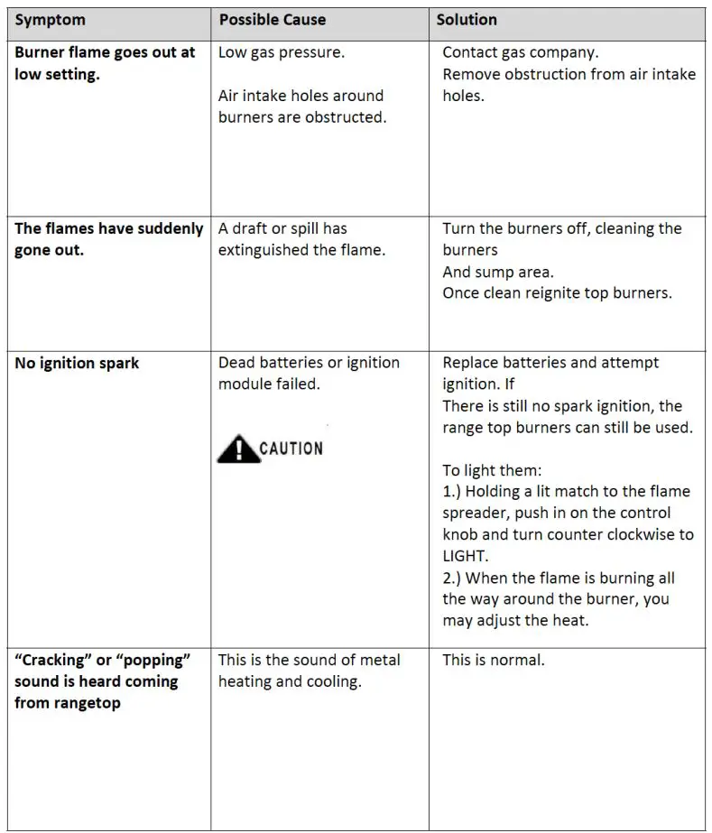 Staples can cause severe cuts and destroy finishes if they come in contact with other appliances or furniture. Carefully read and follow all instructions prior using your new rangetop Be safety conscious. The preparation of food on a range top requires temperatures that could cause severe burns. - Proposition 65