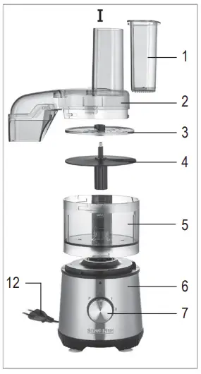 This appliance is equipped with a special safety switch. The appliance can only be switched on if the lid is correctly fitted and the processing bowl properly mounted on top of the drive unit.