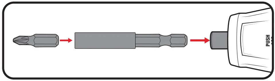 - Push the desired screwdriver bit into the chuck.