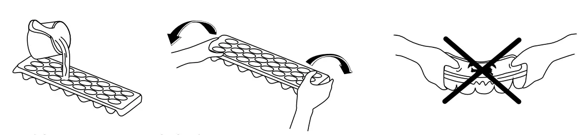 - Do not touch frozen goods with wet hands. Do not eat ice-cream or ice cubes immediately after you have taken them out of the ice-making compartment.
