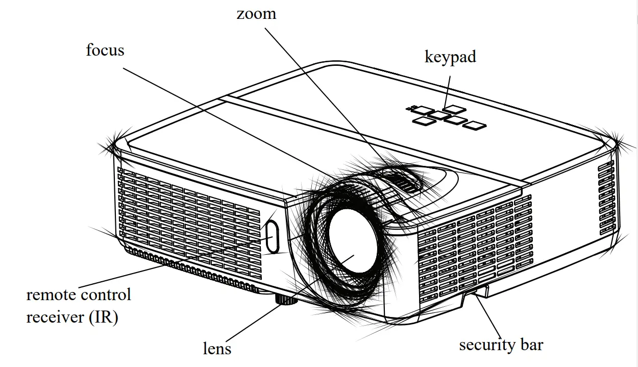 - Do not touch or block the projector lens with any objects as this can damage the projector lens. Scratches, gouges and other lens damage are not covered by the product warranty.