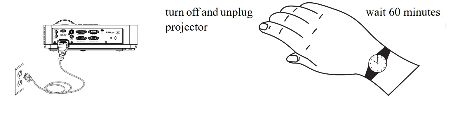 - Only use replacement parts specified by InFocus. Unauthorized substitutions may result in fire, electrical shock, or injury, and may void the warranty