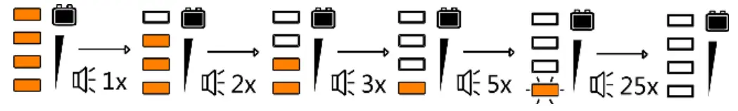 | Battery wrong polarity | ![]() | Battery is connected with reversed polarity (Red LED on) | Remove reversed polarity |