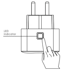 8. Press the button on the plug for 2 seconds the LED indicator will flash continuously for 60 seconds indicating that it is in pairing mode.