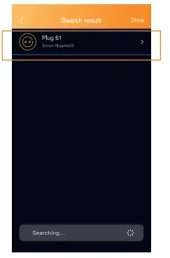 10. When the plug has been found and paired successfully the plug will stop flashing and it will show up in your search results, press on “Done” to complete the process.